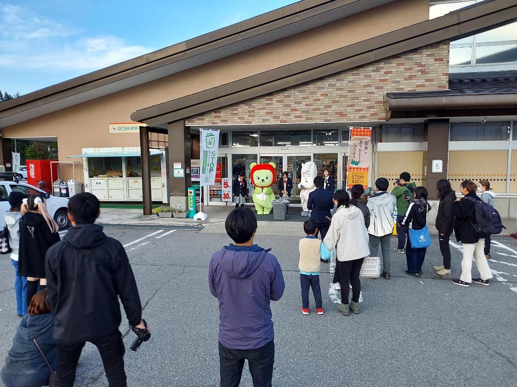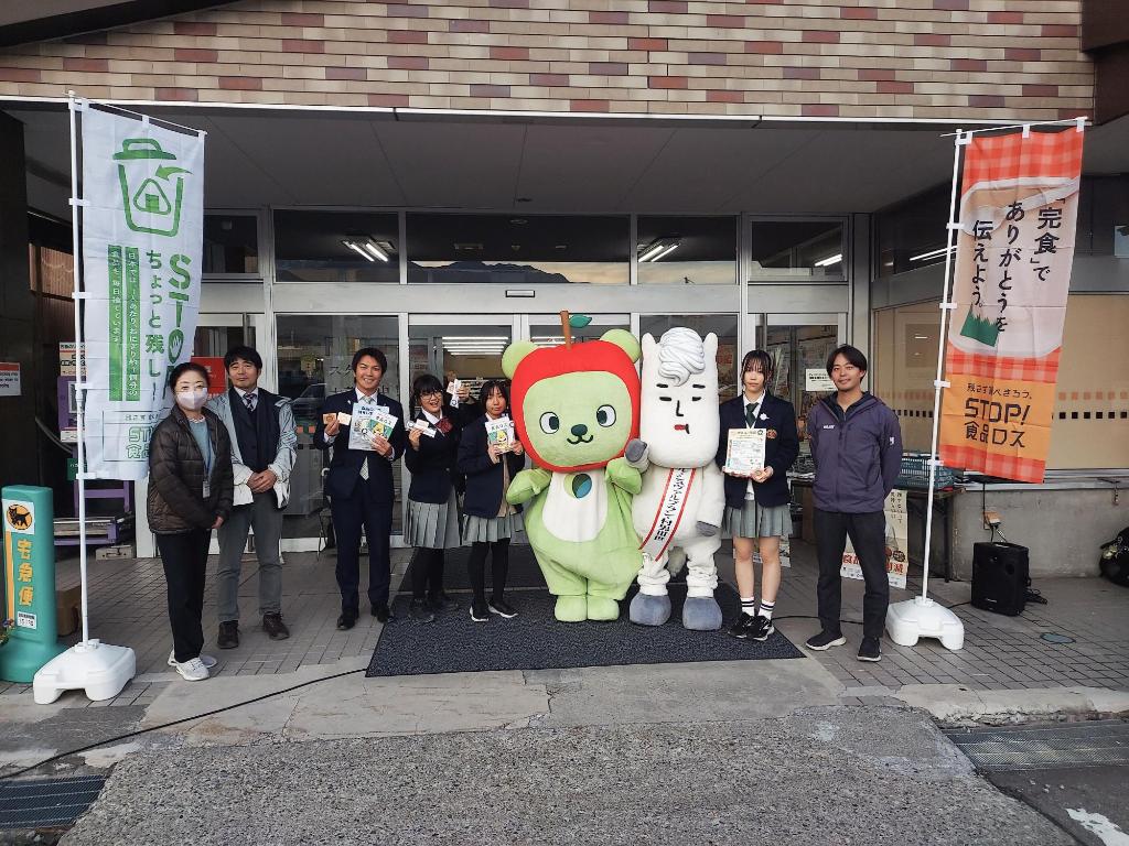 10月30日の「食品ロス削減の日」にちなんで、白馬高校生と村長、GX統括官がAコープハピア白馬店にて、「残さず食べよう!30・10運動」等の食品ロス削減を呼びかけました。