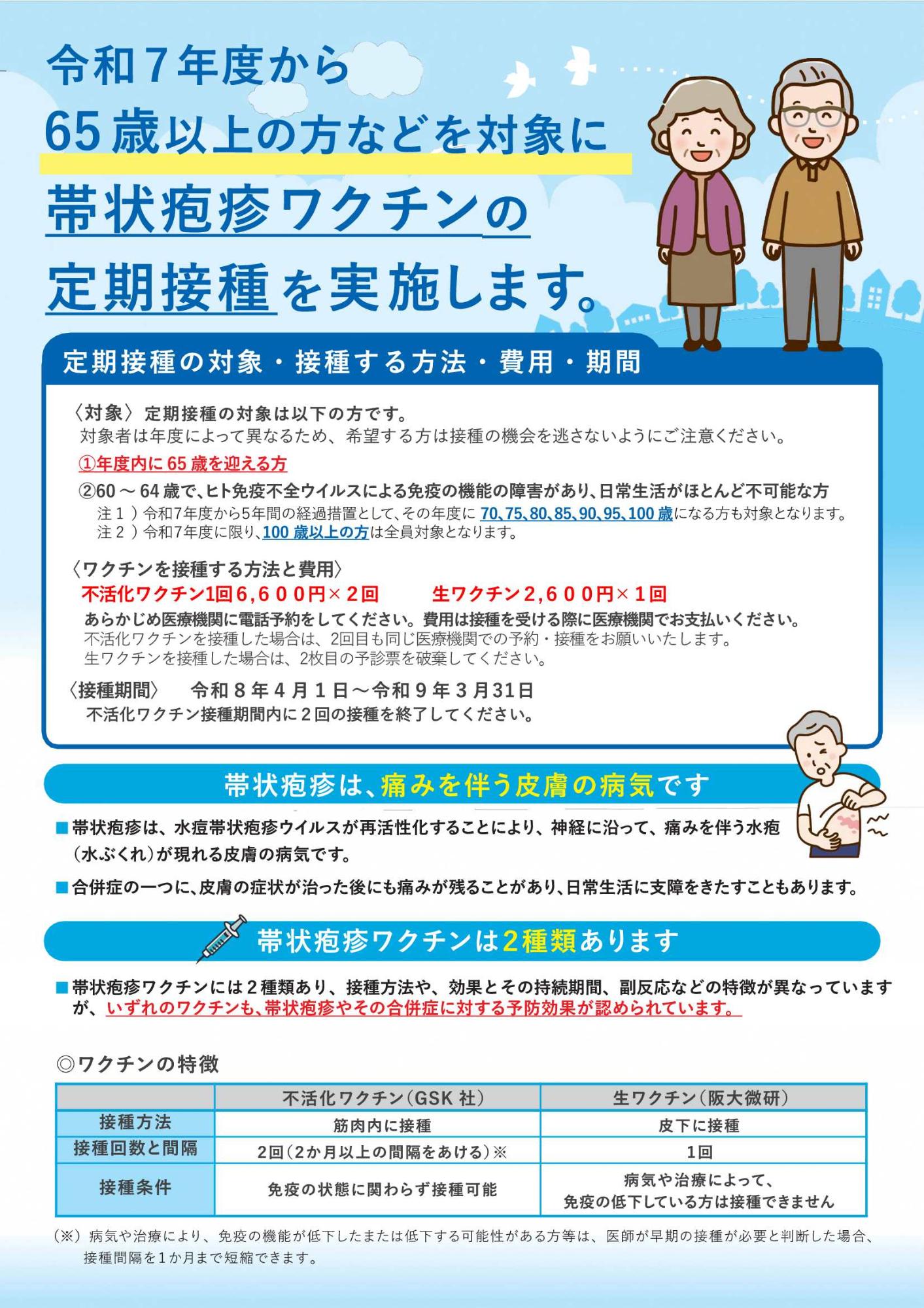 過去に帯状疱疹ワクチンを接種されたことのある方、令和8年度接種年齢以外の方は定期接種の対象となりませんので、補助が受けられません。全額自己負担であれば接種可能です。