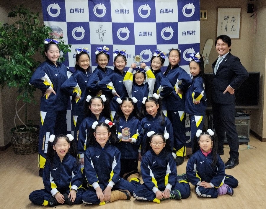 白馬チアリーディングチーム「クリスタルレインディアーズ」の皆さんが、12月28日に埼玉県で 開催されたチアリーディング大会に2チームで出場し、それぞれ「ベストインプレッション賞」と 「グッドスピリット賞」に輝き、1 月 19 日に村長に大会報告をしました。